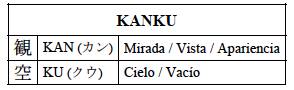 El significado de “Kanku” (観空) es claro: “Mirada al Cielo”. Aunque otras interpretaciones como “Mirar al Cielo”, “La Vista del Cielo” o “Mirar al Vacío” serían posibles, su sentido sería el mismo. Fue el Maestro Gichin Funakoshi quien eligió este nombre, al igual que muchos otros, al introducir el Karate en Japón. Este nombre se debe al primer movimiento de la versión Dai del kata (Kanku Dai, 観空大), en el que se mira hacia el cielo a través de las manos. Para Schlatt , el movimiento de jodan haishu uke que precede el segundo salto de la versión Sho del kata (Kanku Sho, 観空小) también puede interpretarse como una mirada al cielo. Camps y Cerezo escriben “Kanku” en japonés con el carácter “kan” 觀. Dicho carácter tendría la misma pronunciación y significado que el estudiado, y al parecer está en desuso en la lengua japonesa. 2. Otros nombres Antes de que el Maestro Funakoshi cambiara el nombre original a “Kanku”, estos katas recibían el nombre “Kushanku” en Okinawa. Según Schlatt [2] se les otorgó este nombre en honor Kung Shiang Chün, el diplomático chino experto en kenpo que desarrolló el kata*. Nakayama respalda esta teoría cuando explica que su anterior nombre de “Kushanku” proviene de una corrupción del de Kung Siang Chun, miembro de una misión diplomática durante la dinastía Ming y experto en luchas chinas. El nombre “Kushanku” se convirtió en “Koshokun” o “Kosokun” al adoptar la pronunciación propia de Japón, antes de transformarse definitivamente en “Kanku”. también apunta la posibilidad de que el kata Kushanku fuese introducido por Koshokun, enviado del Imperio Ming de China y experto en kenpo. El mismo Kanazawa escribe “Koshokun” en japonés utilizando los caracteres 公柤君. Como nombre propio o apellido de una persona no tendría sentido intentar buscarle un significado. Sin embargo, la traducción de los esos caracteres sugiere algo como “ministro de estado” o “concejal”, en clara referencia a un cargo gubernamental, estatal, público. De esta forma podemos deducir que “Kushanku” y luego “Koshokun”, aúnhaciendo referencia al diplomático chino que creó o introdujo el kata en Okinawa, no evocan el nombre de éste, sino su oficio. La teoría de Camps y Cerezo es que el nombre del kata procede de un experto chino de nombre Kwang Shang-fu, pronunciado “Kushanku” y traducido al okinawés por “Kosokun”. Este maestro, transmisor del kata, habría sido enviado por el emperador Ming a la colonia okinawense de Kumemura en 1761. Estos autores escriben “Kushanku” y “Kosokun” indistintamente con los caracteres japoneses 公柤君. Funakoshi cambiaría el nombre posteriormente por “Kanku” o “Kwanku”. Al parecer en la versión inglesa del libro del Maestro Funakoshi “Karate-do Kyohan”, el traductor, Tsutomu Oshima (Shotokai), afirma que “Kwanku” podría ser otro nombre que recibieran estos katas, siendo la pronunciación de Okinawa de “Kanku”. Si la historia del maestro chino Kushanku es cierta, lo más probable es que hubiera visitado Okinawa a mediados del siglo XVIII, y enseñado a Sakugawa (1733-1815), quien a su vez sería maestro de Sokon Matsumura (1797-1889). Quizá fue Sakugawa quien creó el kata y le dio nombre en honor al que fue su maestro.