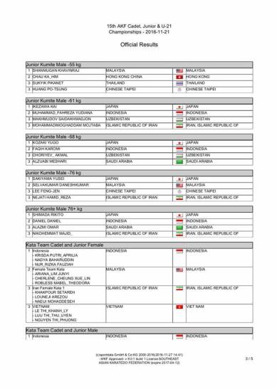 Publicado en 27 noviembre, 2016 en 682 × 960 en 2016 AKF Cadet, Junior championship in Makassar (Indonesia): All Results