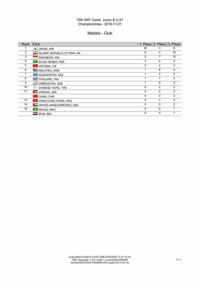 Publicado en 27 noviembre, 2016 en 680 × 960 en 2016 AKF Cadet, Junior championship in Makassar (Indonesia): All Results