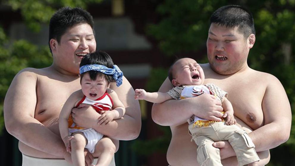 “El niño que llora, crece más rápido”. Esta creencia japonesa hace que, desde hace más de 400 años, se celebre en el país nipón el festival Naki Sumo, una competición que consiste en llorar.