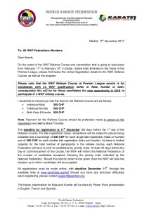 Please find attached information regarding the WKF Referee Course and examination that is going to take place from February 11th to February 15th, 2018, in Dubai, UAE