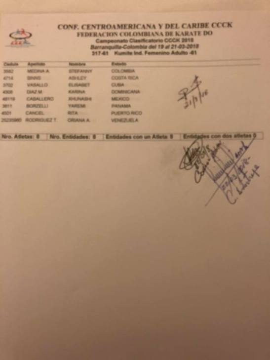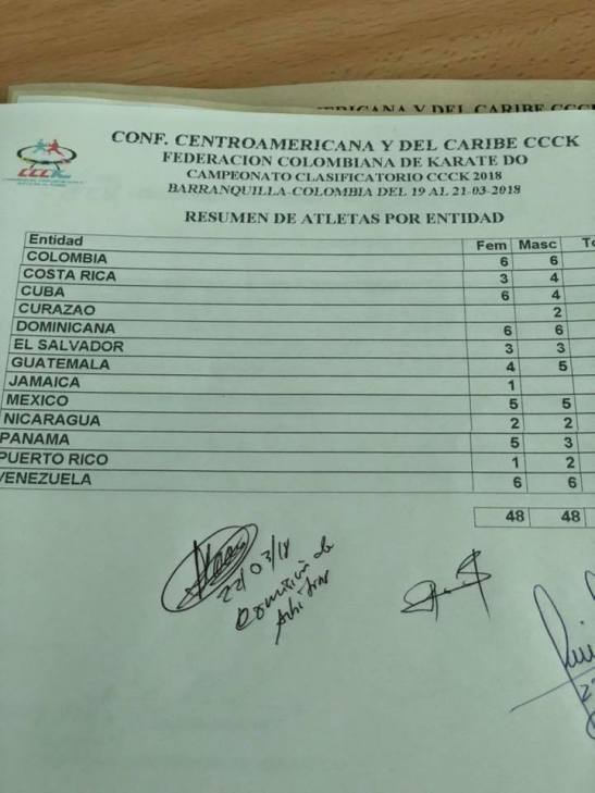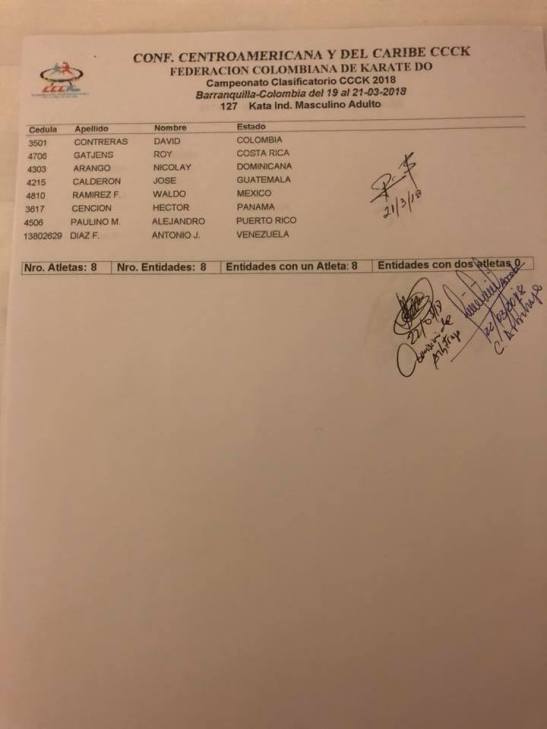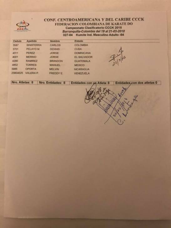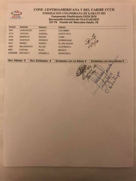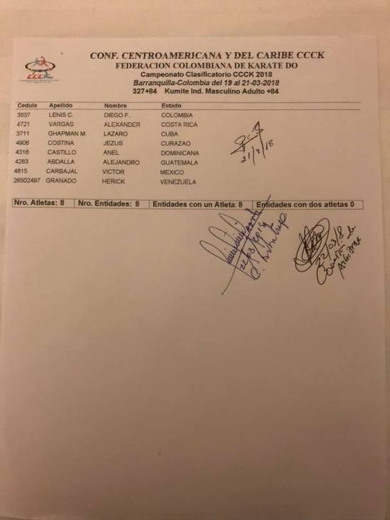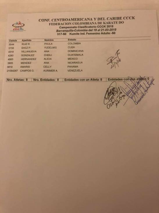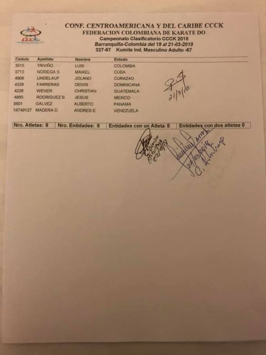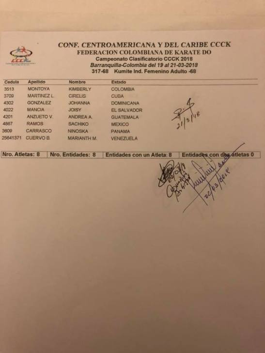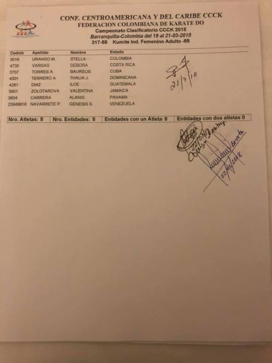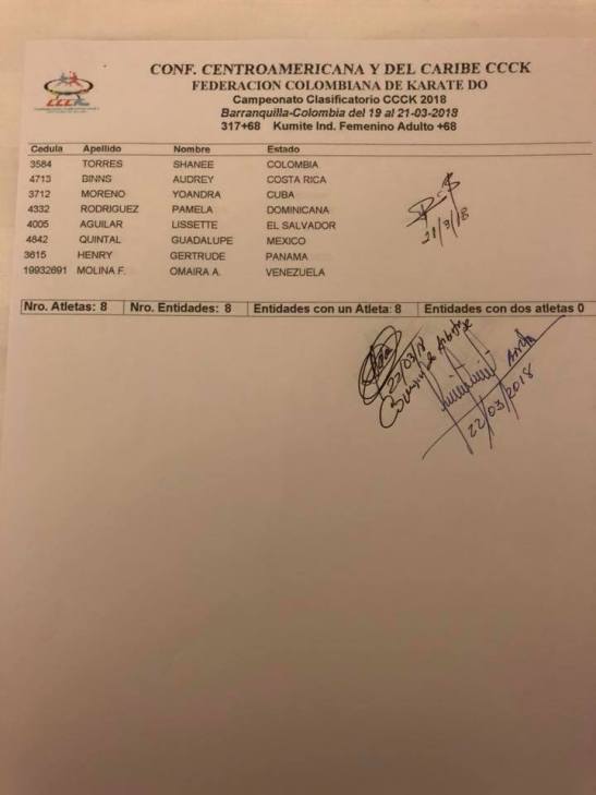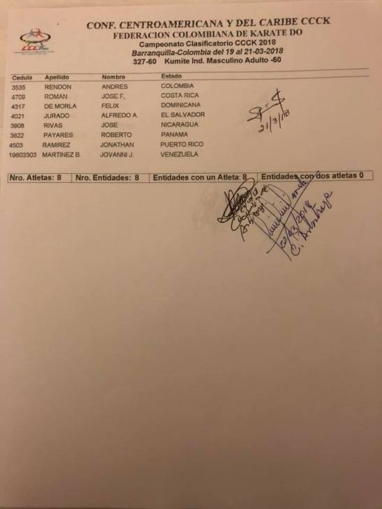 Clasificados en Karate para los Juegos Centroamericanos y del Caribe que se realizarán en Barranquilla (Colombia) del 19 de julio al 3 de agosto del 2018