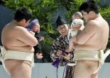 Japón y sus Tradiciones: Festival Nakizumo;Los luchadores de sumo toman bebés en sus brazos para hacerlos llorar