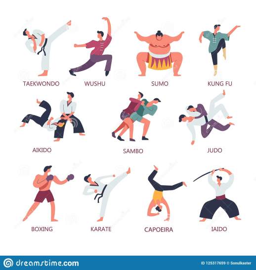 el-luchar-y-artes-marciales-del-deporte-lucha-de-la-gente-vector-en-japonés-taekwondo-125317659